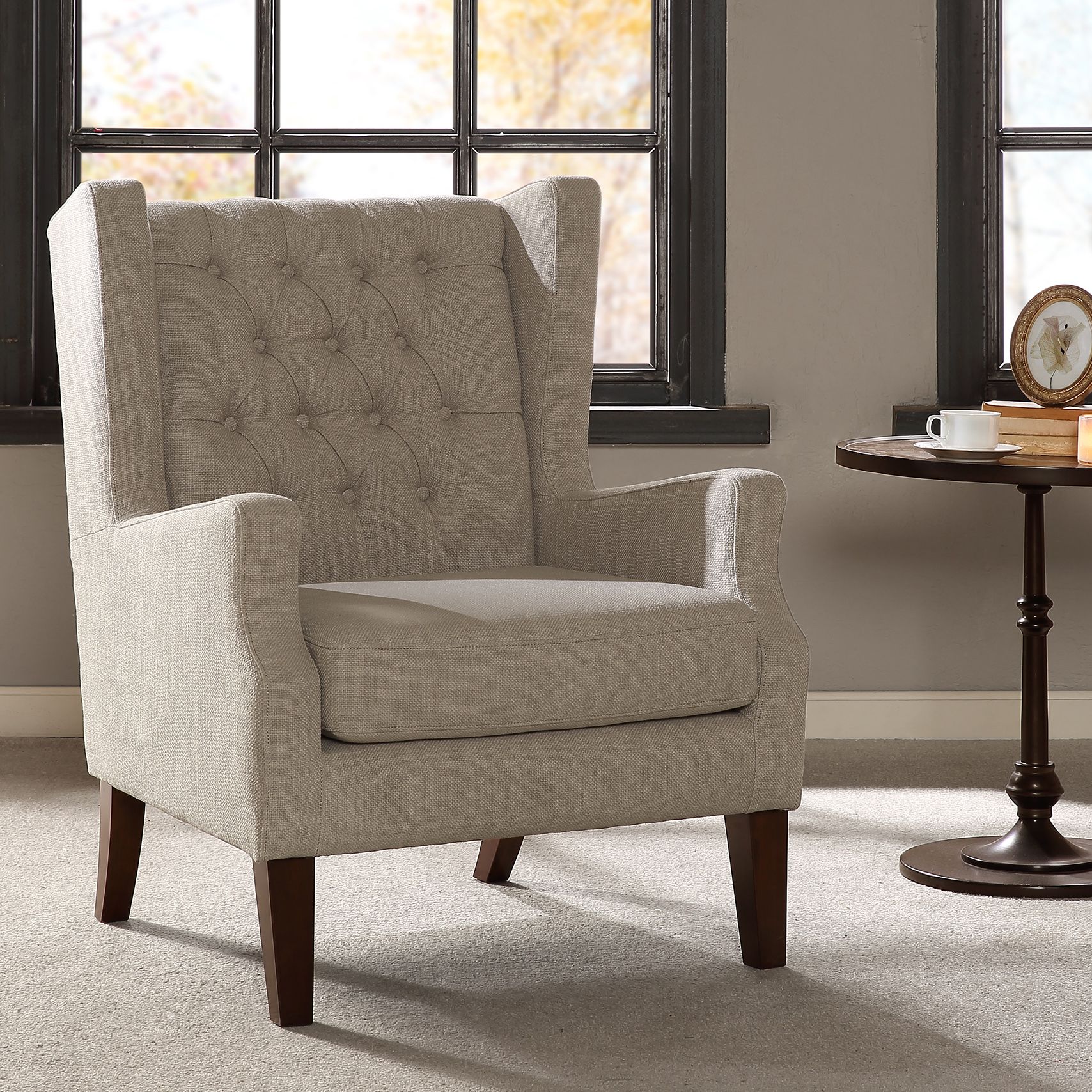 The wingback chair brings a traditional look to your living room or den.